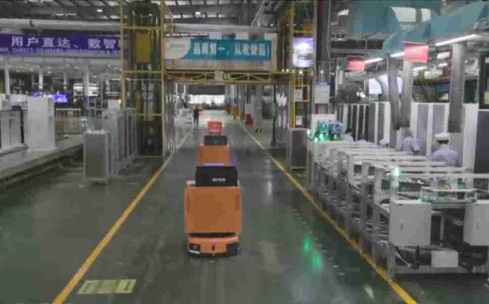 为车载冰箱物流配送打造的智能解决方案,,包含产中物流通过潜伏举升AMR搬运至线边,,产后成品物流智能仓储,,流程包含产中物流智能齐套入库,,,,线边安灯叫料AMR智能配送至线边,,,,成品入库、、、、出库,,,通过无人堆高车机器人,,智能仓储管理替代人工作业管理,,实现更高存储、、、更高效率、、、更具柔性化的解决方案。。。